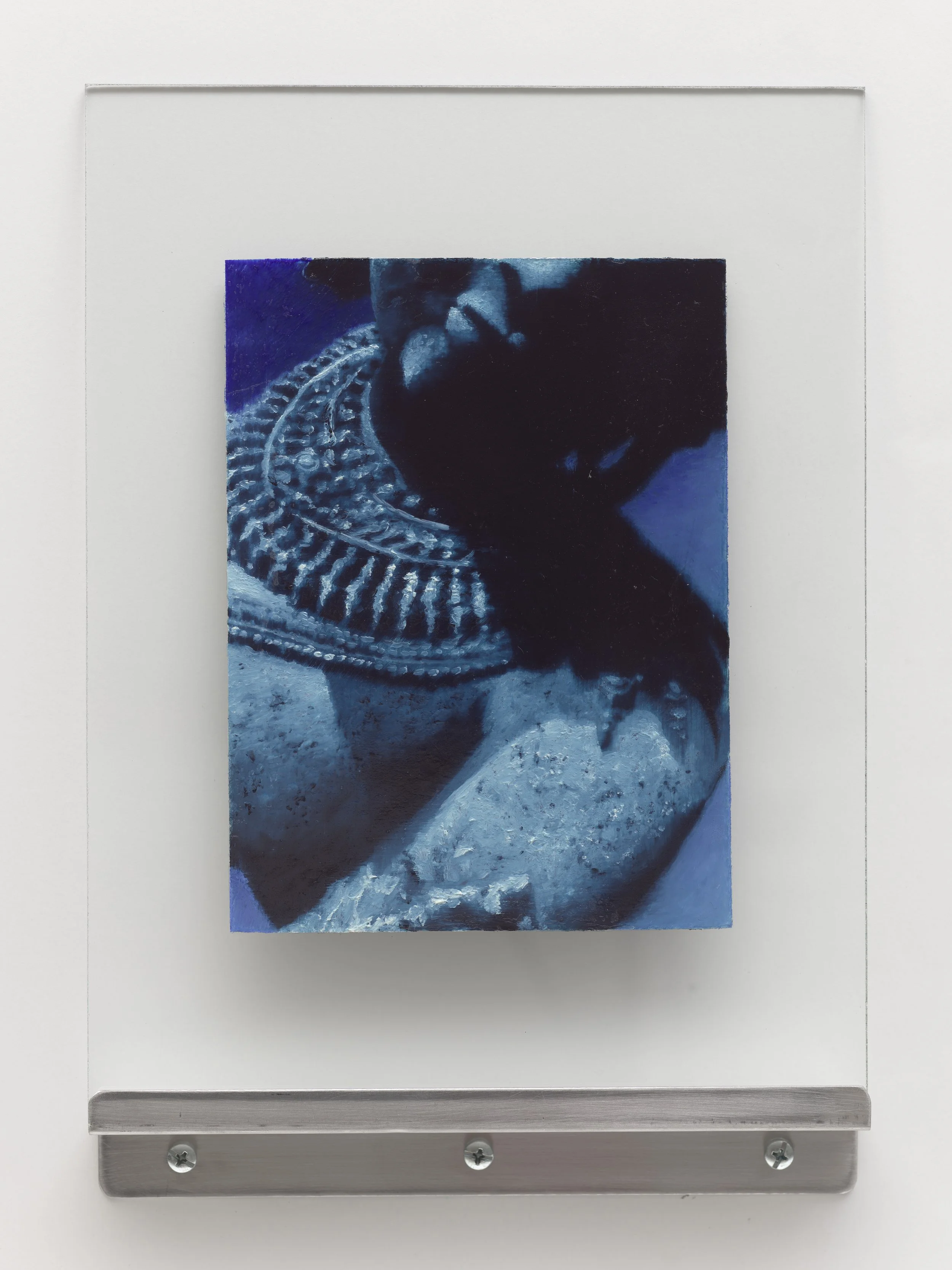 Hindi Head on a Head, oil on glass 9x12”, 2018