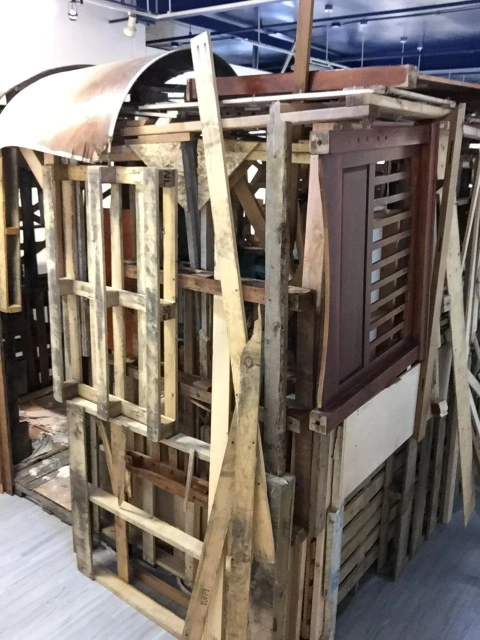 7 Years Studio, scrap wood, 10' cubed, 2018