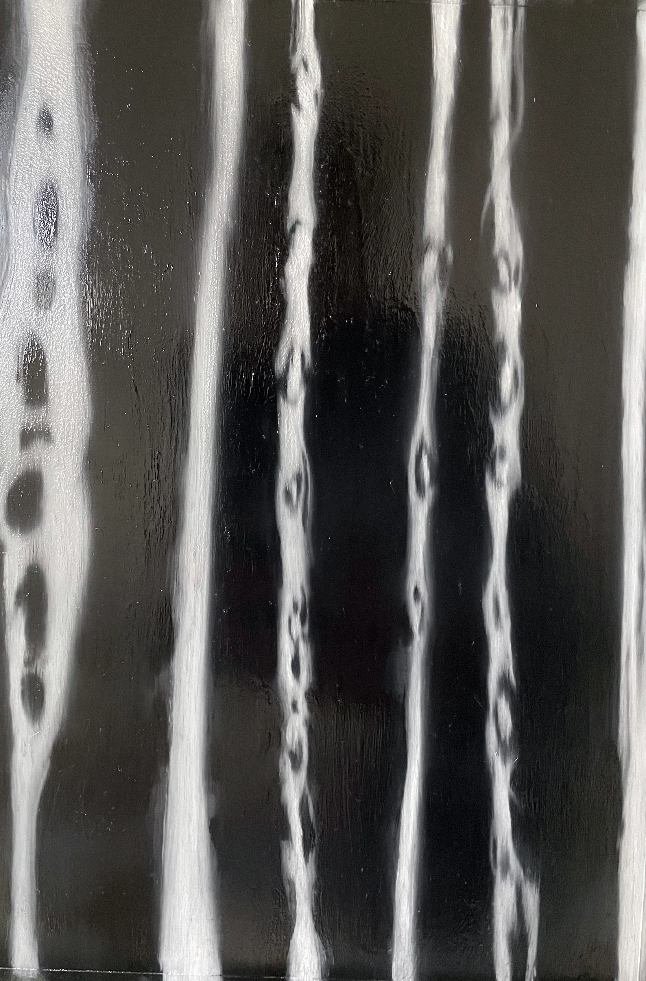 Pine Wood (tangential section) X1200, 9x12", oil on glass, 2024